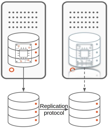 - Database solution-based replication, where a database level protocol pushes the changes happening within one database to the other databases. This is the kind of clustering provided by solutions like MongoDB’s ReplicaSet, Microsoft SQL Server’s AlwaysOn Availability Group and Oracle database’s Data Guard. We can have 2 subtypes for database solution-based replication: